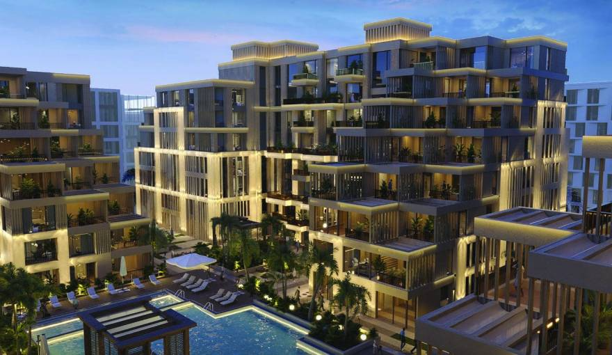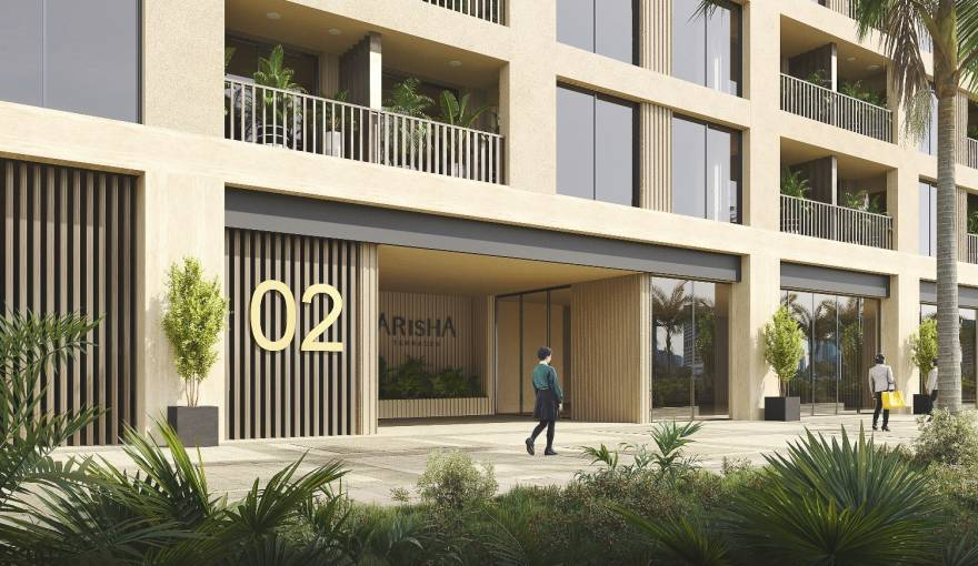 Dubai Studio City welcomes Arisha Terraces, a thoughtfully designed residential community by Qube Development. Four low-rise buildings, each eight stories high, are arranged around a central landscaped courtyard that offers a serene escape from city lights. With 414 apartments in 122 unique layouts, this project blends sustainability, comfort, and style for modern living.