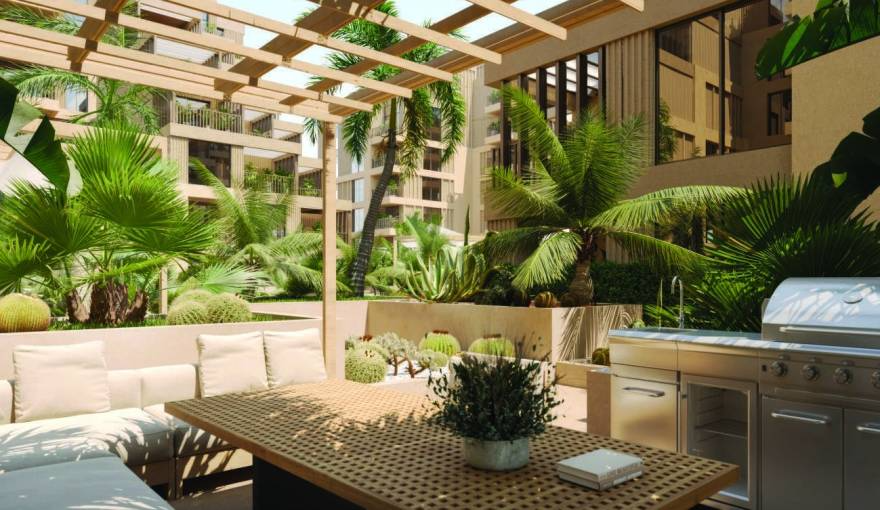 • Rooftop padel court, hydroponic rooftop garden, BBQ & firepit zones.